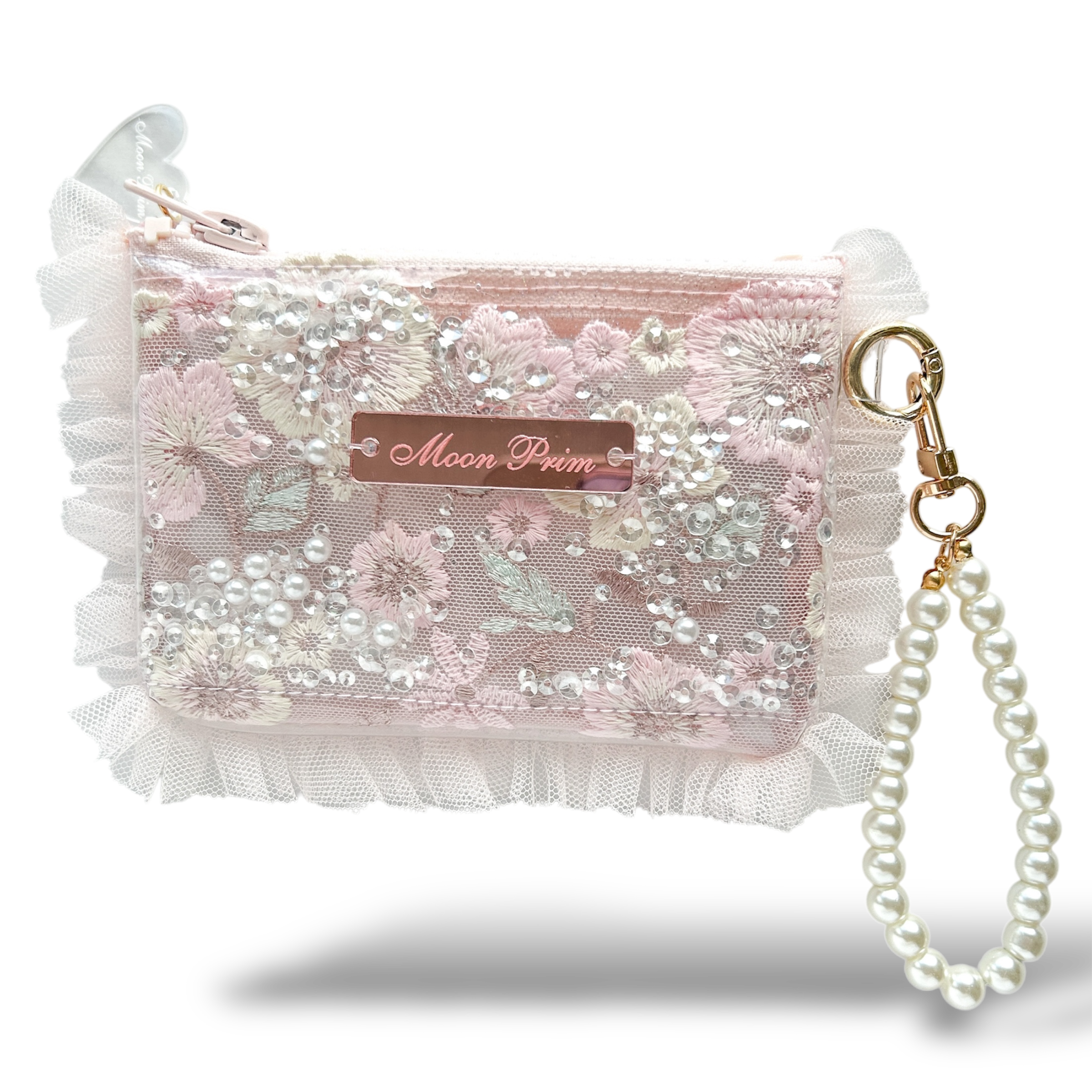 淡いピンクカラーの刺繍生地使用したポーチです♡