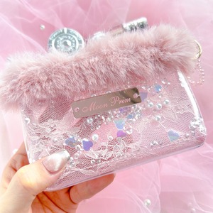 ふわふわのファーとキラキラクリアのポーチ