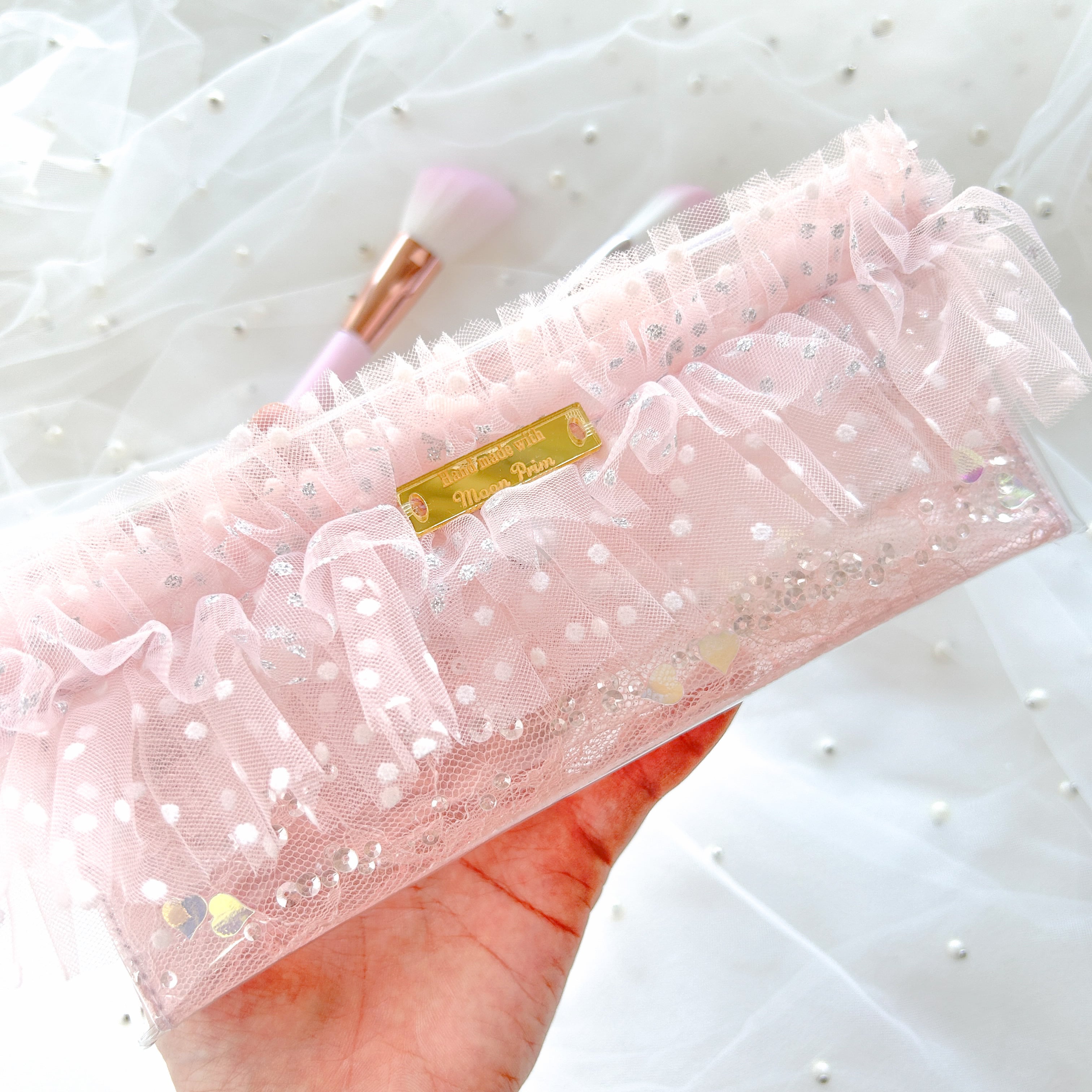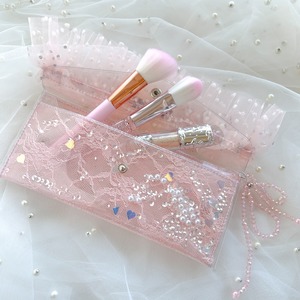 チュールフリルをふんだんに使用した、PVC素材のペンケースです。